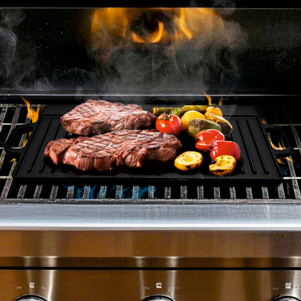 Gătit eficient, curat și sănătos pe orice grill. Transformă experiența ta de gătit în aer liber cu tava pentru grătar, concepută pentru a preveni scurgerea alimentelor printre grilele grătarului și pentru a asigura o gătire uniformă și curată. Ideală pentru legume, pește, carne marinată, brânzeturi la grătar sau preparate delicate, această tavă este esențială în trusa oricărui iubitor de BBQ. Potrivită pentru utilizare pe grătare cu cărbune, pe gaz sau chiar la cuptoare de exterior. Se integrează ușor în majoritatea grătarelor de dimensiuni medii. Suprafața netedă și antiaderentă permite curățarea ușoară cu apă caldă și detergent.
