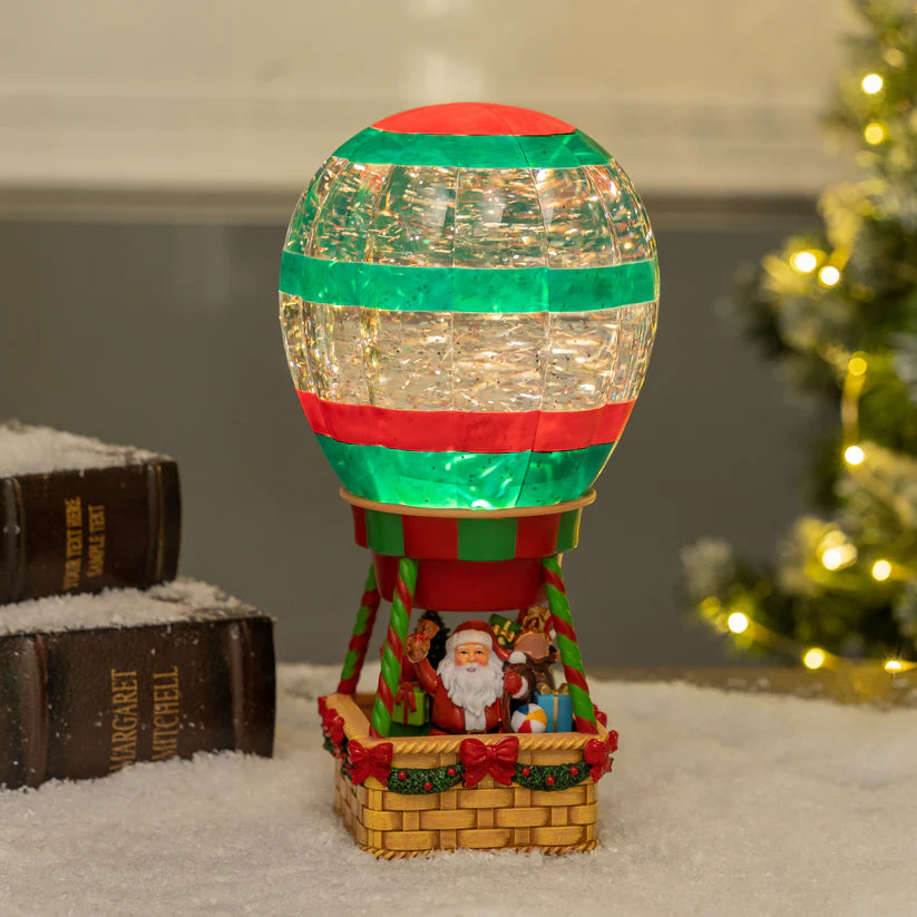 Decoratiune Craciun luminoasa cu balon cu aer cald si Mos Craciun 13 x 13 x 25.5 cm