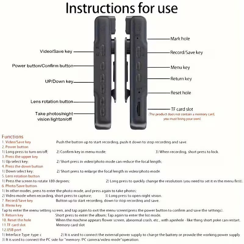 • Functii: Cameră video ascunsa, 4K, vedere nocturna IR