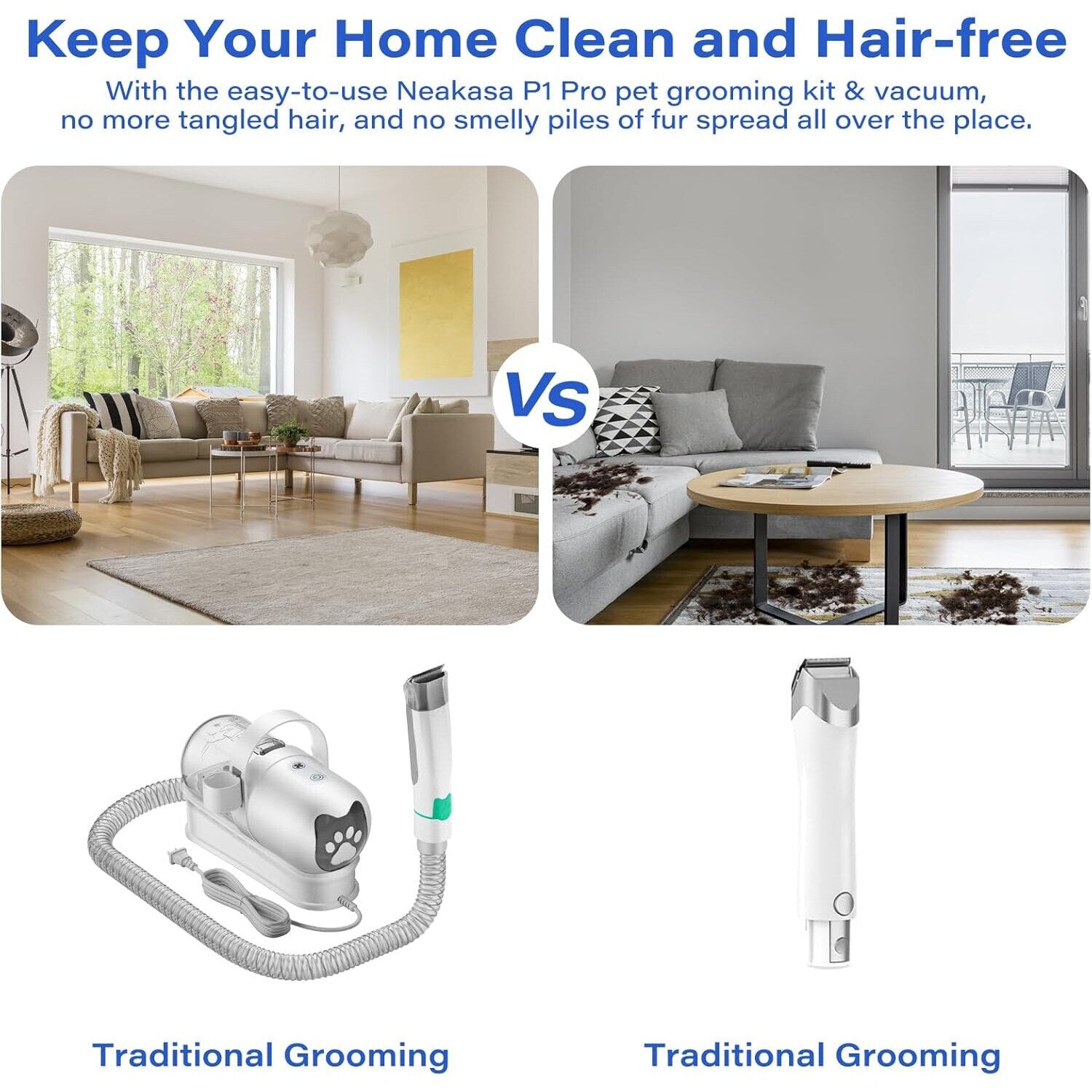 Ingrijeste-ti cainele sau pisica acasa, rapid, curat si fara stres! Acest set profesional 7 in 1 combina functiile de tuns, aspirare, periere, descurcare si curatare a parului intr-un singur aparat multifunctional. Blana animalului ramane frumoasa si matasoasa, iar casa ta curata.