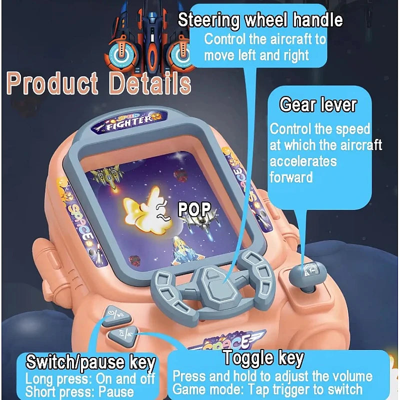 Ofera copiilor o experienta interactiva si distractiva cu aceasta consola de jocuri arcade, special conceputa pentru a stimula coordonarea si imaginatia. Cu un volan realist, cei mici isi pot controla propria nava spatiala, evitand obstacolele si descoperind noi provocari la fiecare nivel.