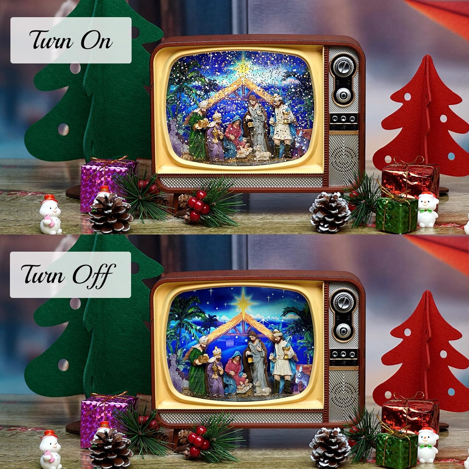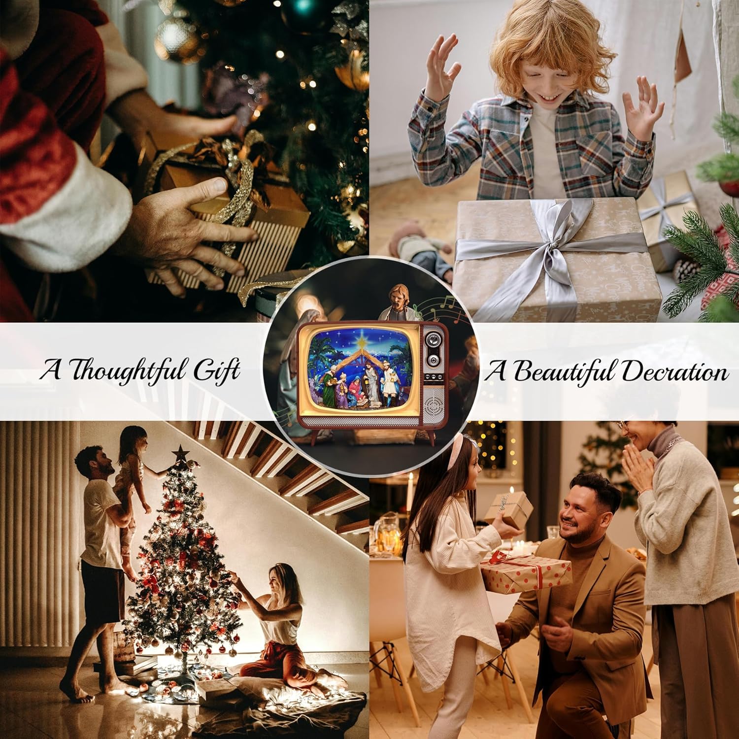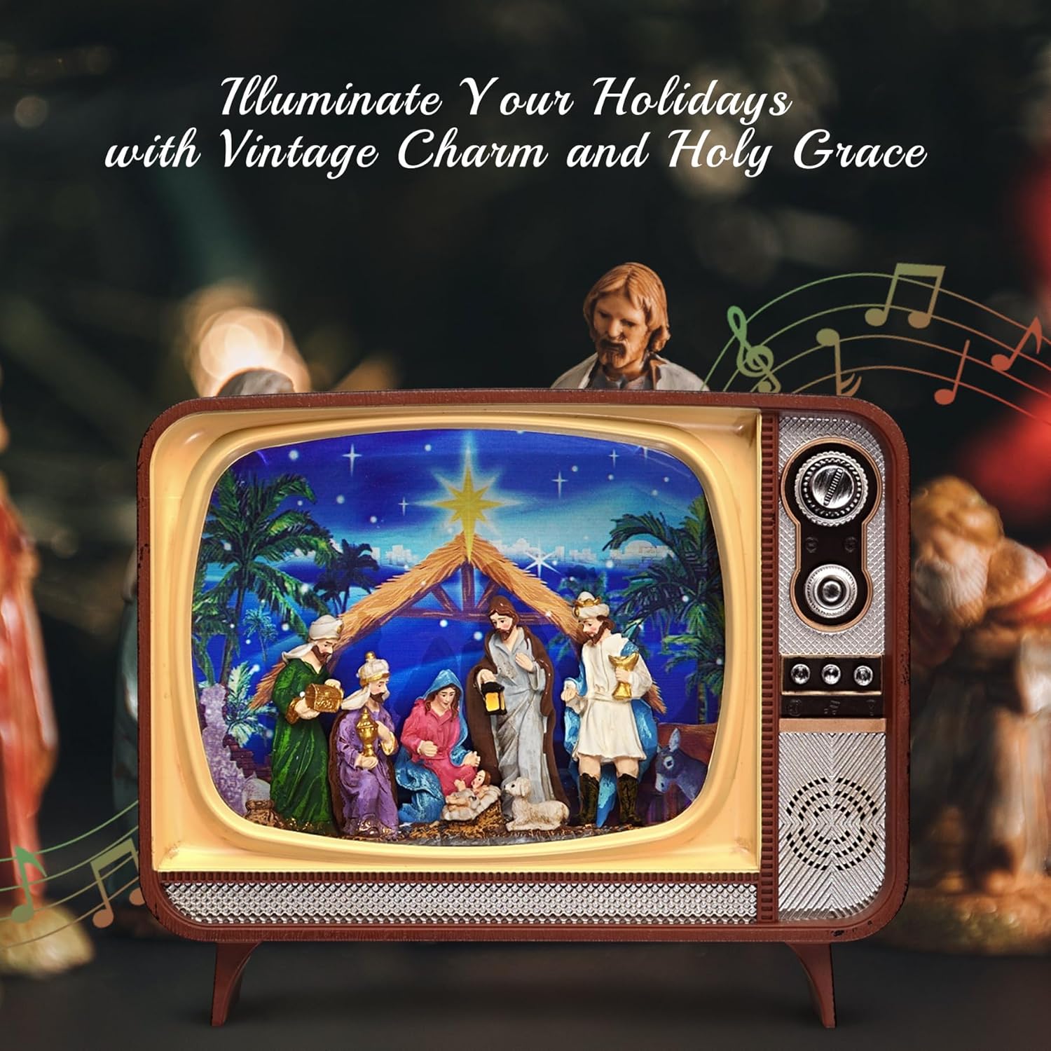 Design vintage cu scena Nasterii Domnului – aspect retro in stil TV, perfect pentru un decor nostalgic si festiv.