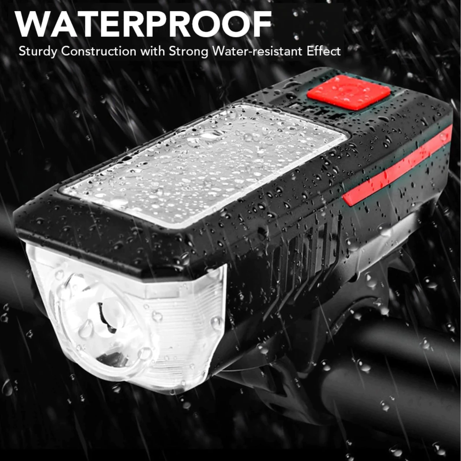 Far LED cu incarcare solara si claxon pentru bicicleta/trotineta