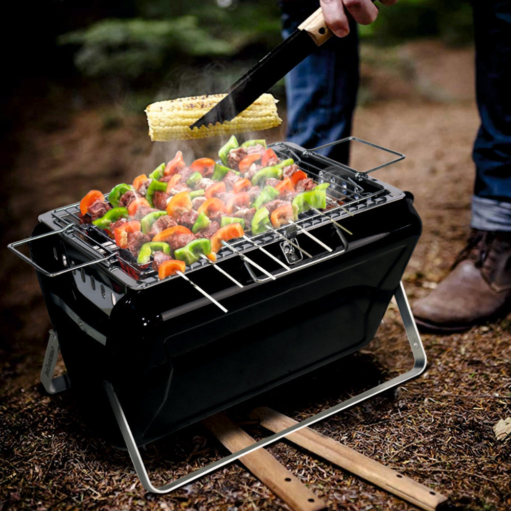 Portabil, compact și gata de grătar oriunde ai merge. Bucură-te de gustul autentic al preparatelor la grătar oriunde te afli, cu grătarul portabil, proiectat în format tip valiză, ușor de transportat și montat. Ideal pentru picnicuri, camping, plajă, drumeții sau grătarul de weekend în balcon sau grădină. Se pliază complet într-o valiză compactă cu mâner, ocupând spațiu minim. Ideal pentru rucsac, portbagaj sau raftul de camping. Corpul grătarului este realizat din oțel vopsit în câmp electrostatic, rezistent la temperaturi ridicate și uzură. Grătarul superior se îndepărtează rapid pentru curățare, iar cuva metalică este ușor de golit și șters după utilizare.