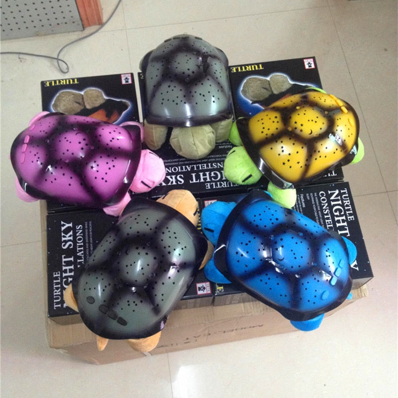 Umple tavanul de stele: proiector broscuta testoasa, 8 constelatii, 7 culori si cinci melodii. Carapacea testoasei creeaza un efect de veioza reconfortant. Lampa proiecteaza interactiv constelatii in trei culori magice. Din interiorul carapacei sale de plastic, broscuta proiecteaza o constelatie magica de stele pe tavan si peretii dormitorului.