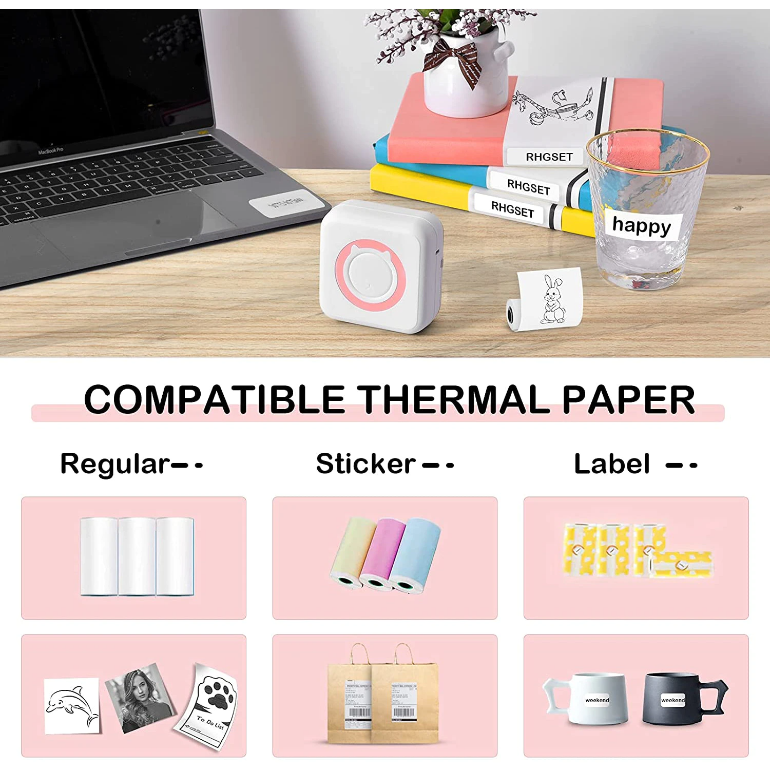 Mini imprimanta termica alb/negru - Imprimanta mobila multifunctionala este buna pentru a face fotografii, a imprima, a lua ramas bun de la scrierea de mana si a va imbunatati eficienta invatarii. Imprimanta de note de studiu, efectul imprimarii de inalta rezolutie. Textul si imaginile dactilografiate sunt mai clare si de calitate superioara, facand oamenii mai eficienti in invatare, lucru si divertisment. 10 role suplimentare de hartie de tiparit, dimensiunea 57 mm x 5 M.