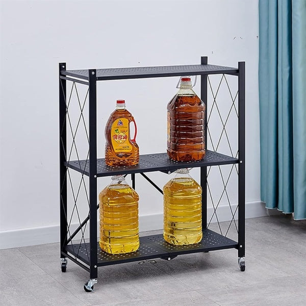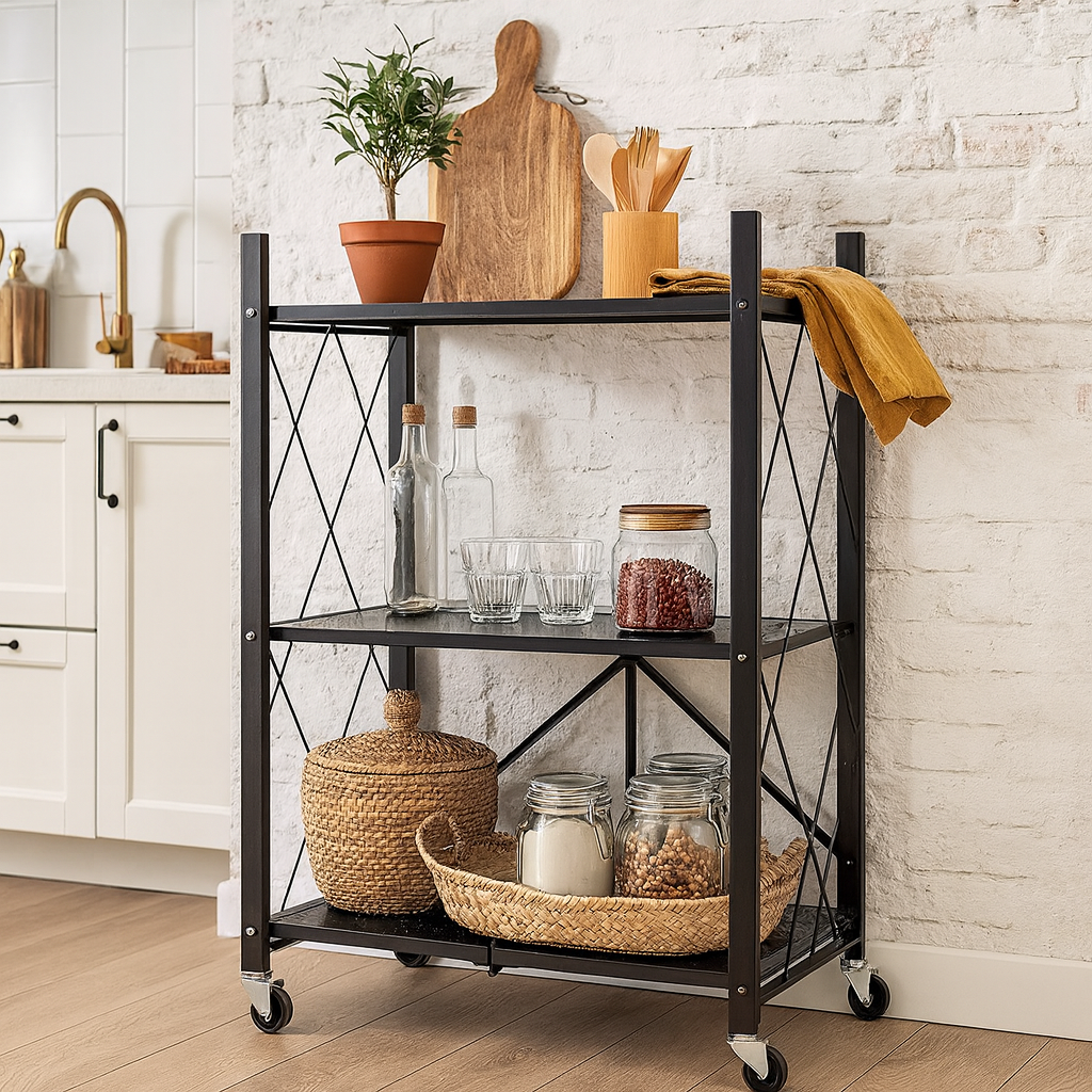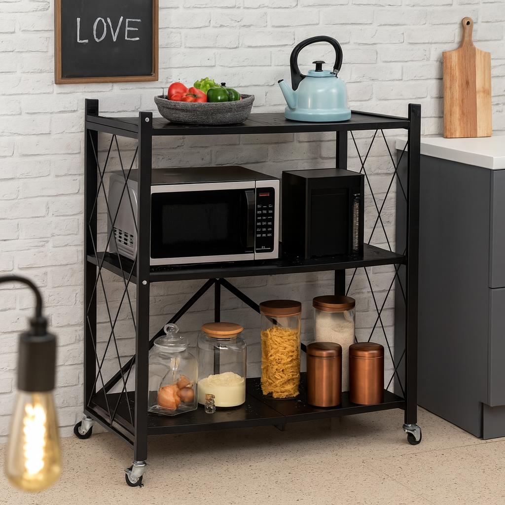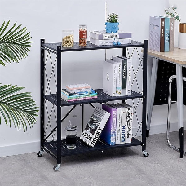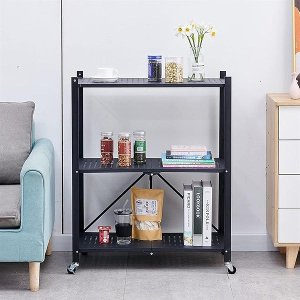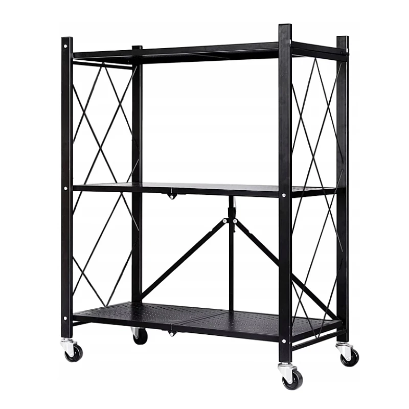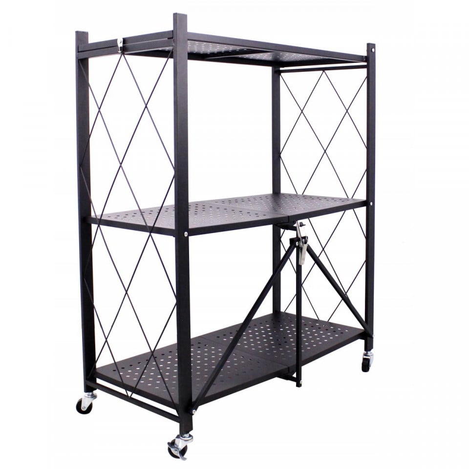 Raft depozitare, metalic, pliabil, pe roti, 3 polite,72 x 34 x 87 cm