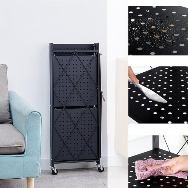 Raftul pliabil este solutia ideala pentru organizarea casei tale. Practic, stabil si usor de mutat datorita celor 4 roti (dintre care 2 cu sistem de blocare), acest raft este perfect pentru bucatarie, camara, living sau dormitor. Atunci cand nu este folosit, poate fi pliat complet pentru a economisi spatiu.