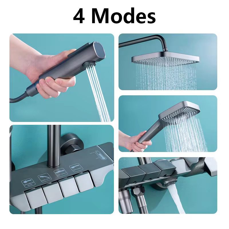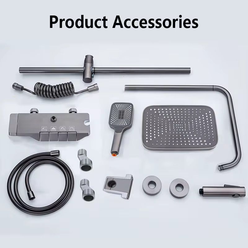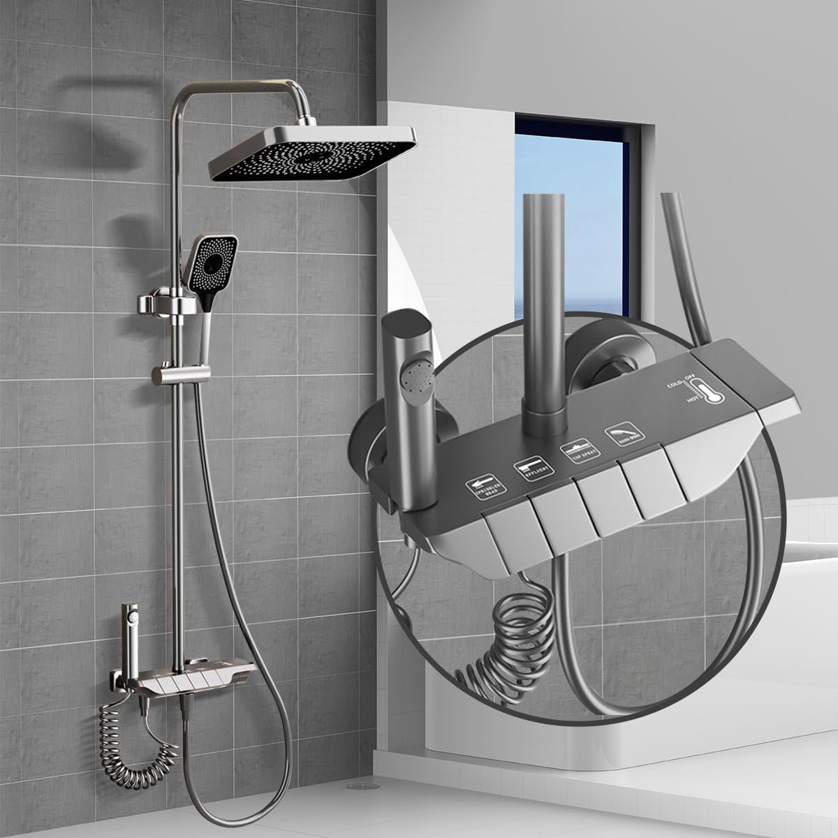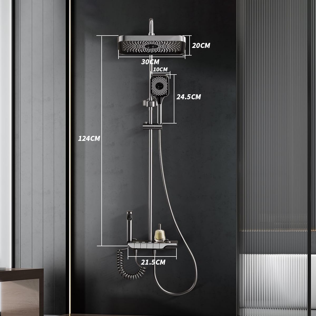 Inalta standardele estetice si functionale ale baii tale cu acest Set Coloana Dus Premium, realizat din materiale rezistente si finisaje moderne. Combinatia dintre Alama si Cupru pentru componentele interne si exteriorul din ABS durabil, in nuanta Gri Grafit (Negru Gri Mat), ofera un echilibru perfect intre durabilitate si eleganta.