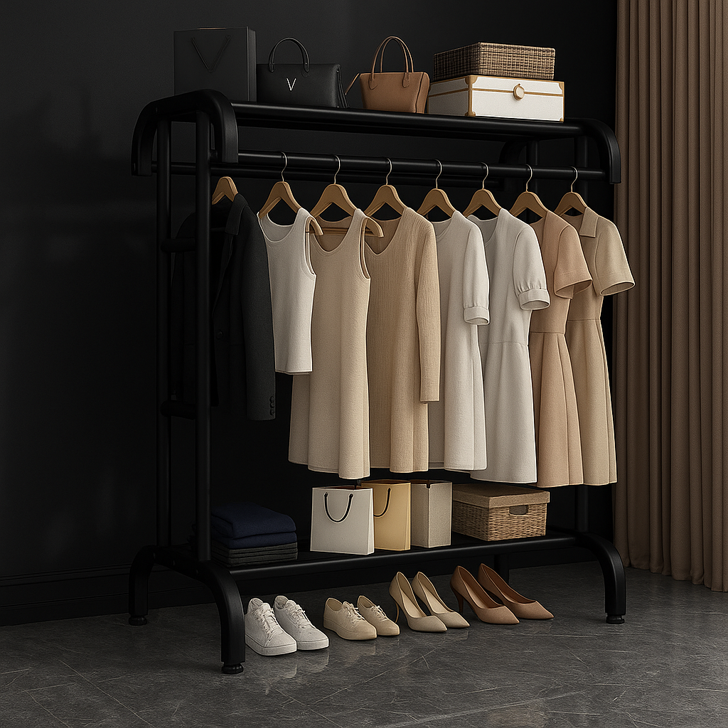 Garderobă portabilă: Se poate plasa cu ușurință în dormitor, hol, dressing, spălătorie sau balcon – ideală pentru încăperi mici sau spații fără dulapuri încorporate.