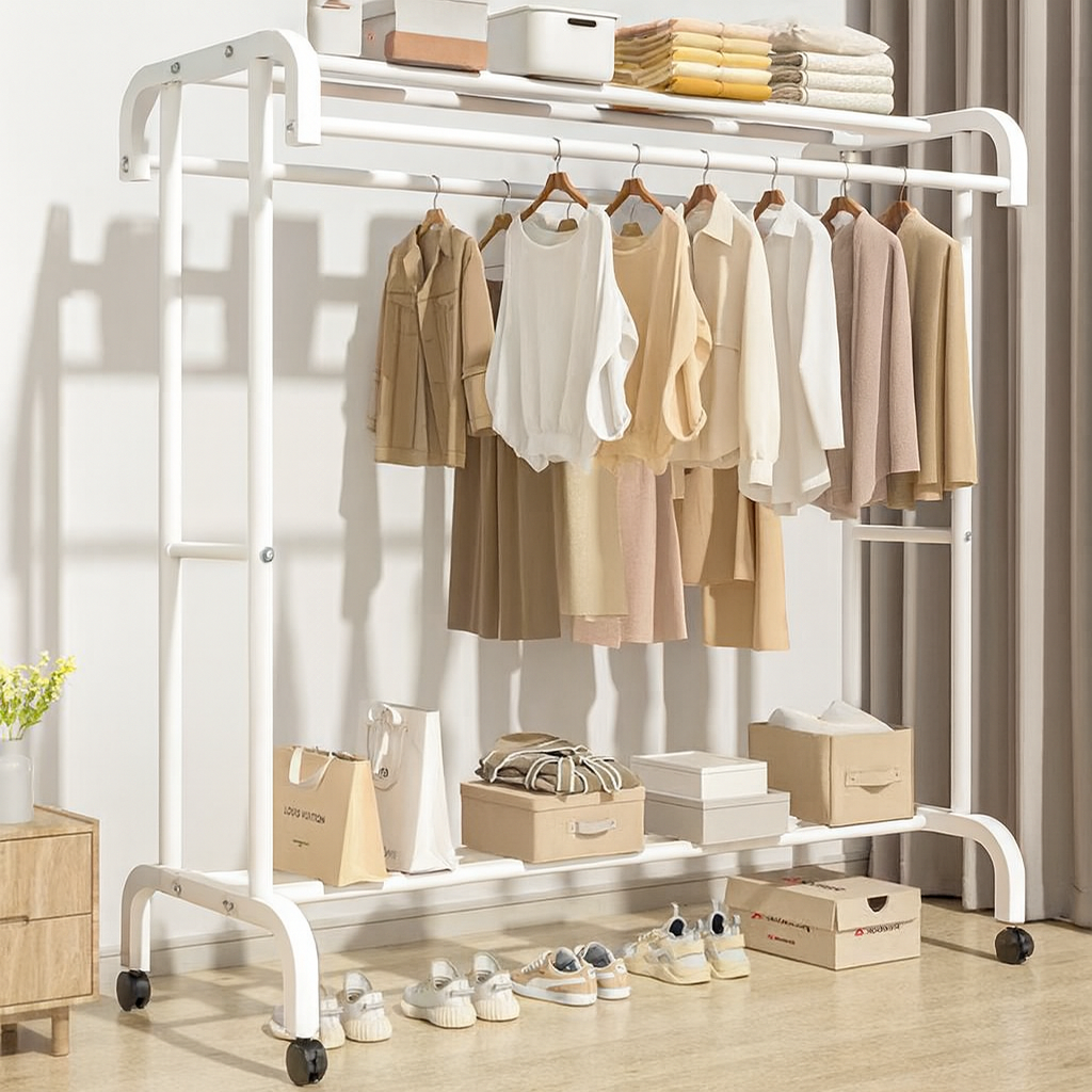 Un suport practic și robust pentru haine, ideal pentru organizarea eficientă a dormitorului, holului, spălătoriei sau oricărui spațiu cu depozitare limitată.