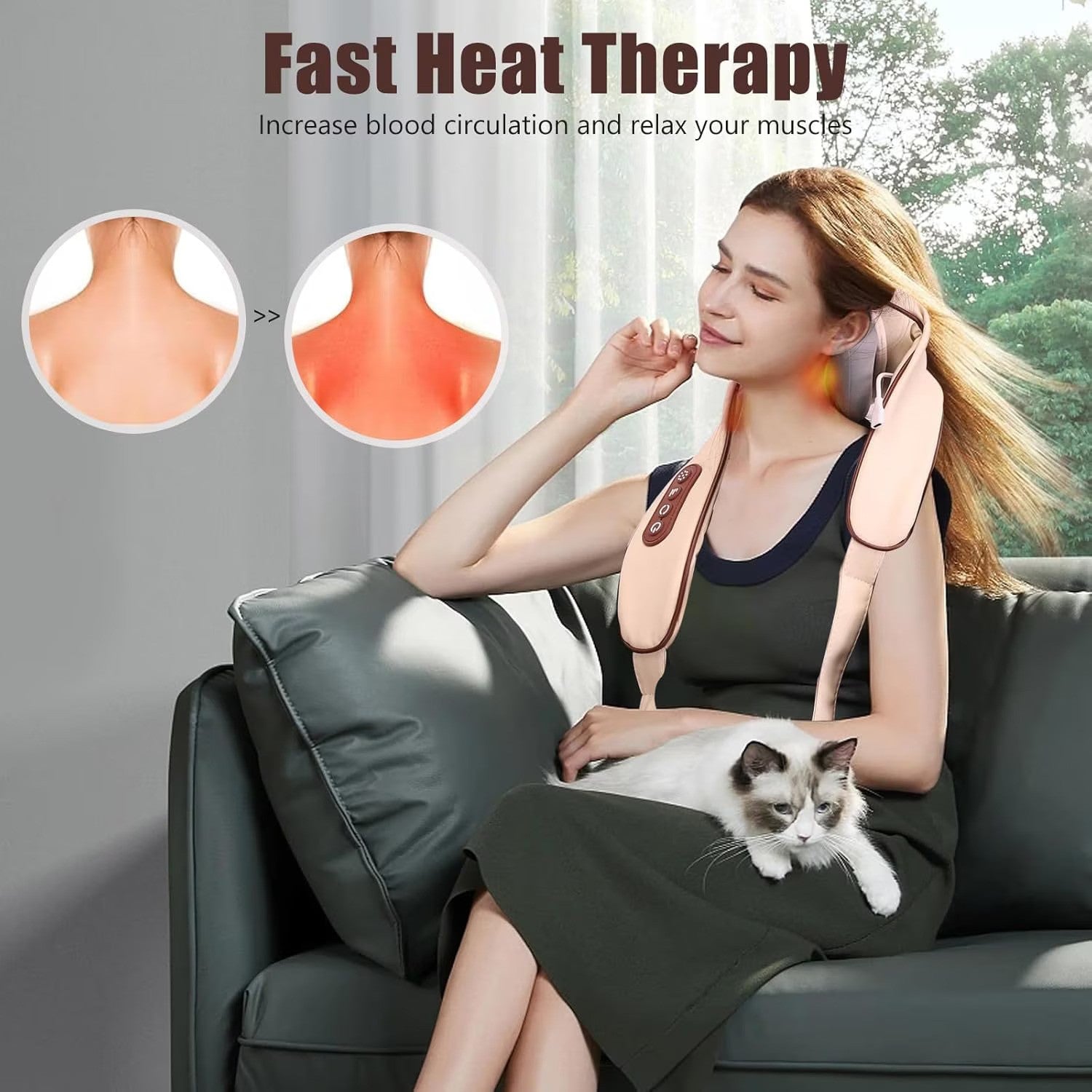 ✔ Functie de incalzire cu temperatura constanta – Ajuta la detensionarea muschilor si la imbunatatirea circulatiei sangvine.