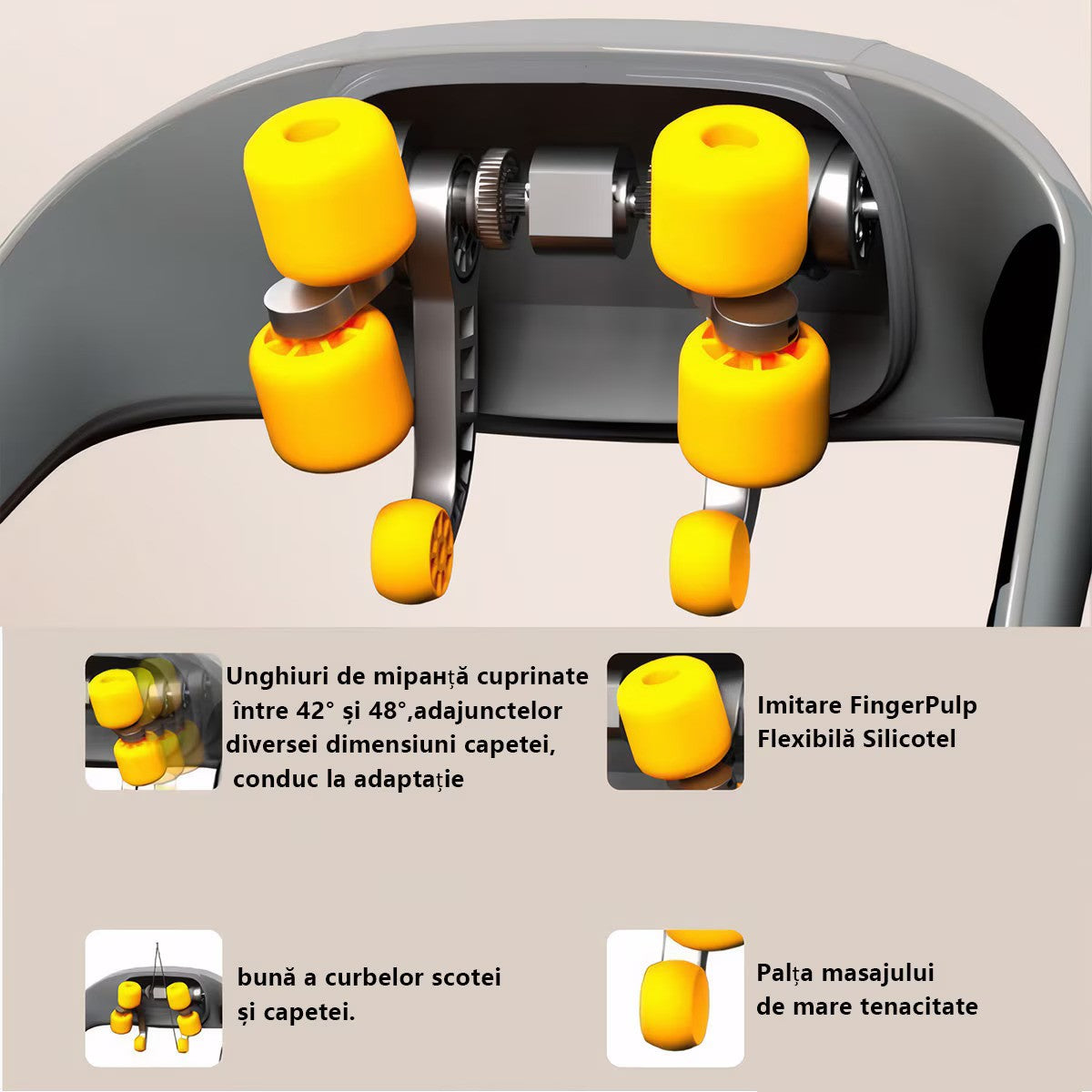 ✔ Masaj 6D cu 6 capete din silicon – Imita miscarile reale ale mainilor pentru un masaj profund si eficient.