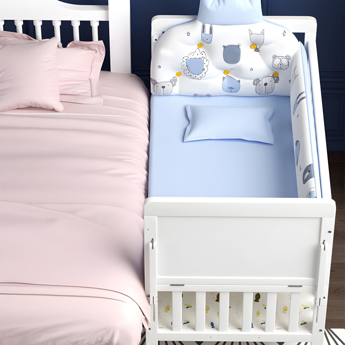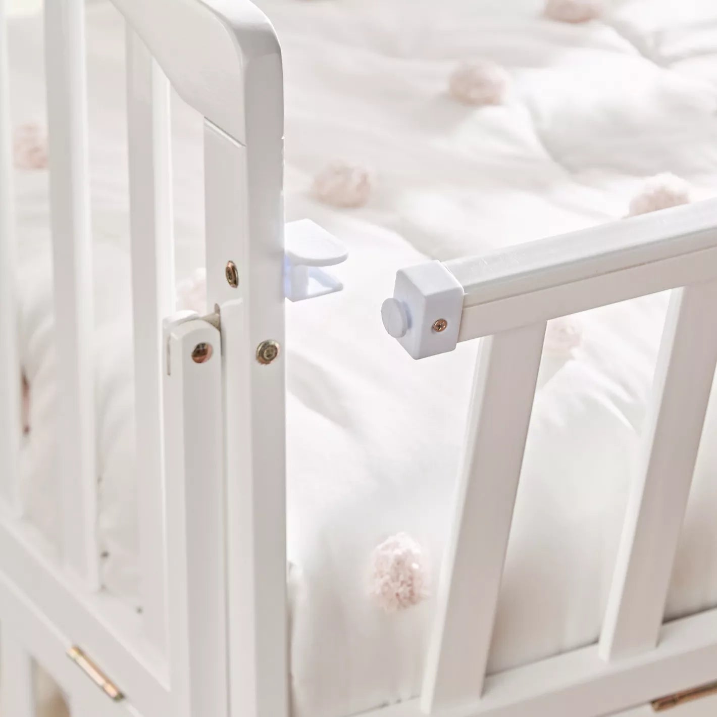 Patutul este echipat cu bare de protectie cu functie de teething rail pe ambele parti, permitand bebelusului sa roada marginile in siguranta, fara riscul de a-si rani gingiile sau de a inghiti bucati mici de lemn.