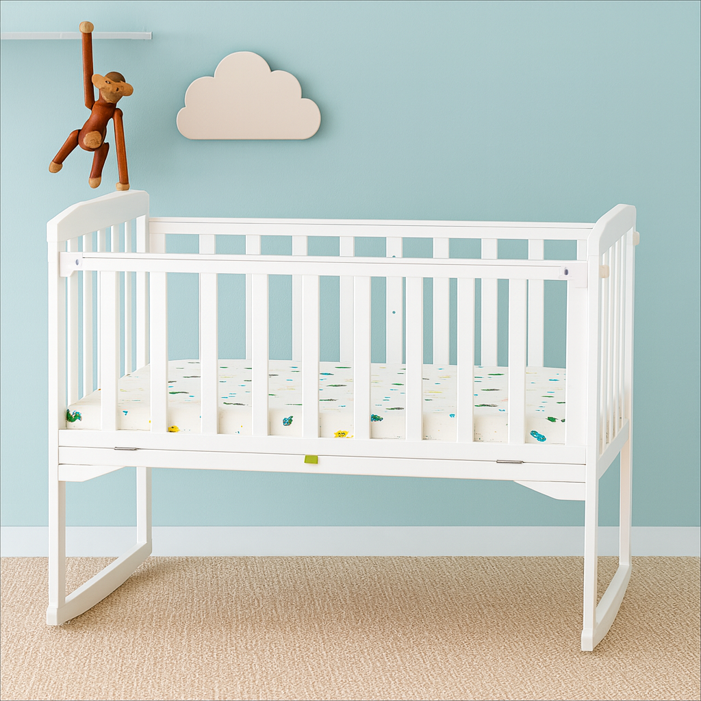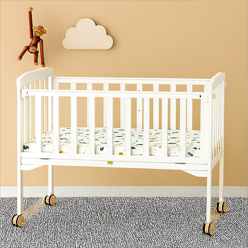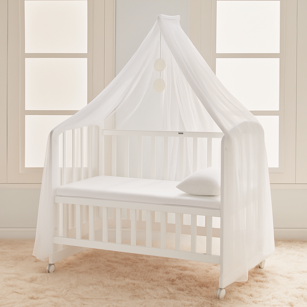 Include plasa de tantari pentru protectie suplimentara si confort. Baza patului se regleaza pe 3 niveluri, adaptandu-se etapelor de dezvoltare de la bebelus la toddler. Vopseaua non-toxica asigura un mediu sigur pentru copil.