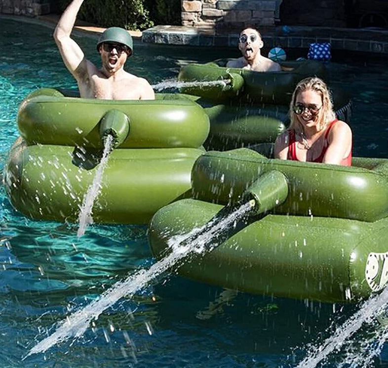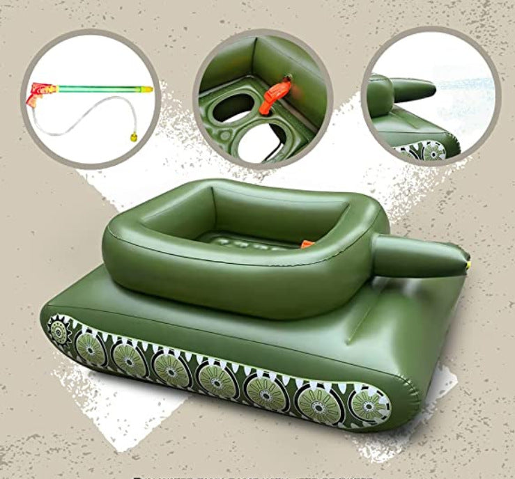 Ideal pentru petreceri de vara, zile insorite in piscina sau pur si simplu pentru relaxare activa. Tancul gonflabil cu pistol de apa aduce zambete garantate si este perfect pentru cadou.