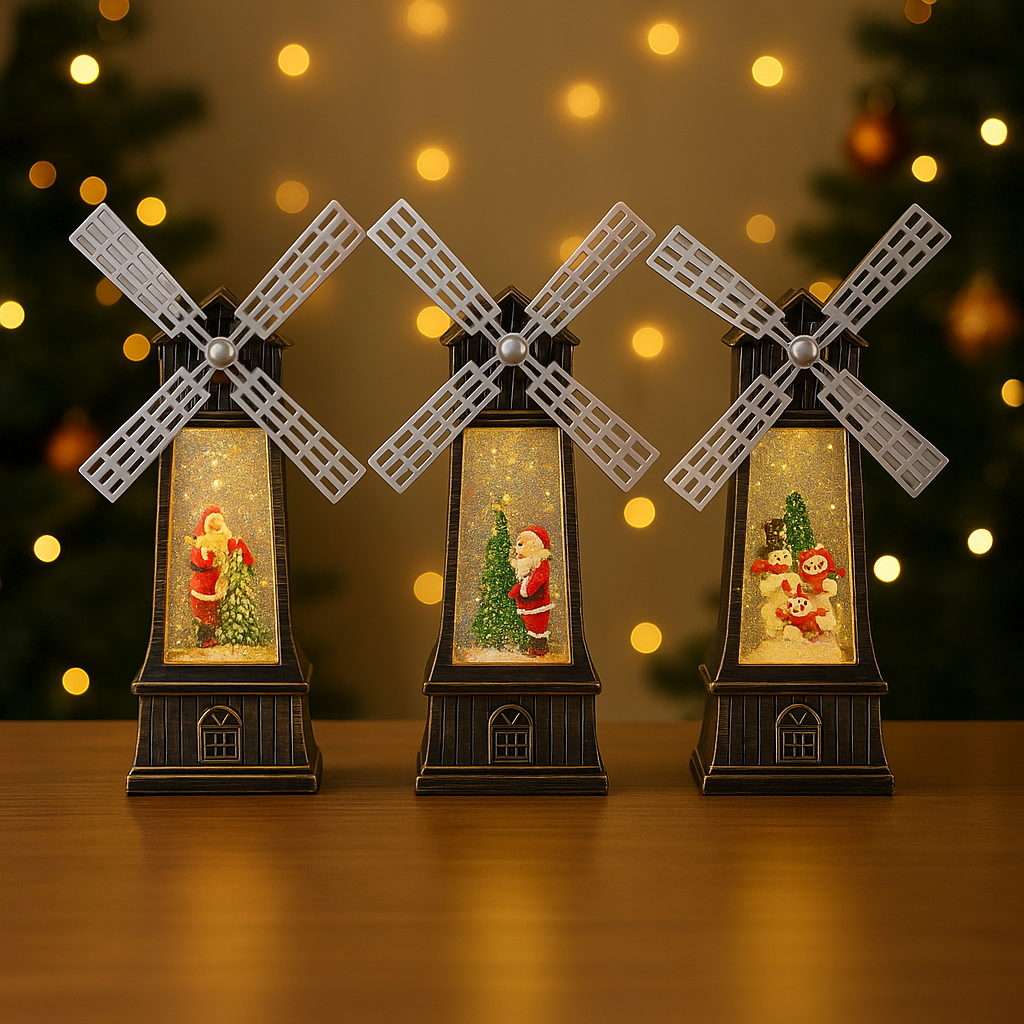 Adauga o nota spectaculoasa decorului tau de sarbatori cu aceasta figurina vintage de Craciun, inspirata din estetica unei mori de vant clasice. O decoratiune premium, plina de farmec si nostalgie, perfecta pentru a crea o atmosfera de basm in casa ta.