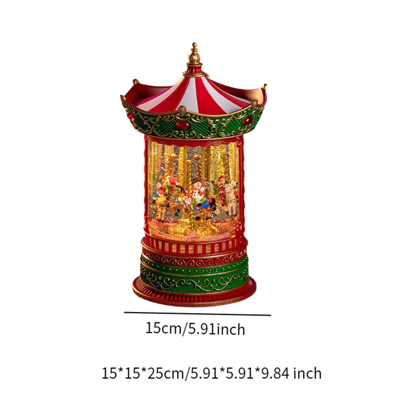 Adauga magia Craciunului in casa ta cu acest glob muzical spectaculos, ce combina eleganta unui carusel cu farmecul iernii. Realizat din materiale de calitate si finisat manual, globul prezinta o scena festiva cu Mos Craciun, un om de zapada si cai de carusel, inconjurati de fulgi stralucitori si lumina calda.
