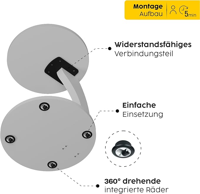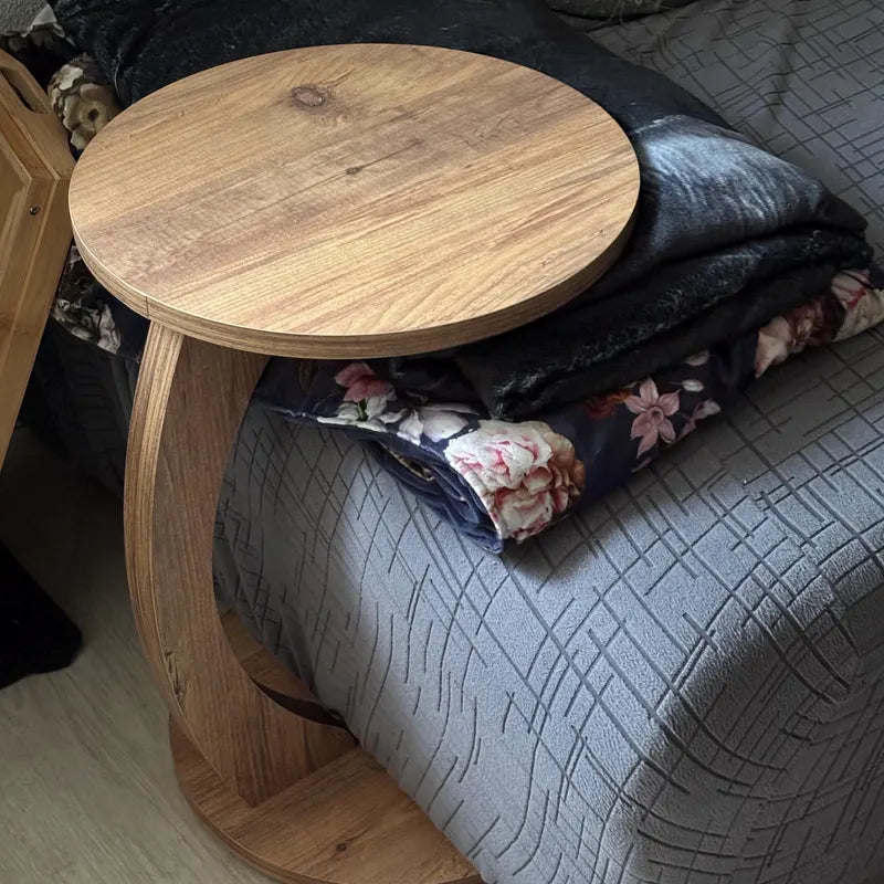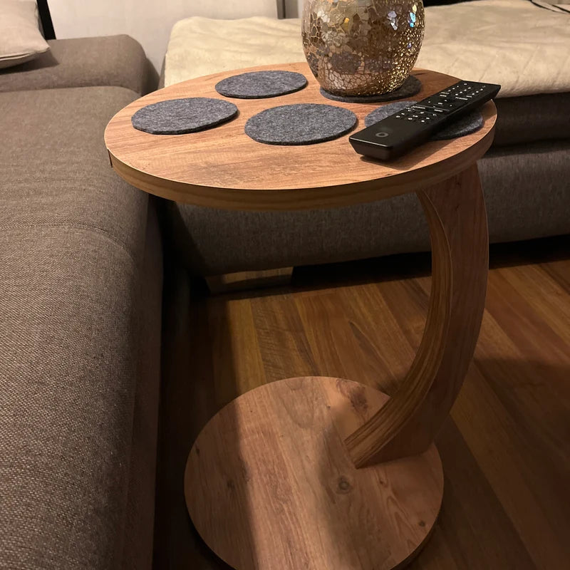 Aceasta masuta rotunda este ideala pentru cei care cauta confort si utilitate intr-un spatiu compact. Datorita bazei cu roti, se poate muta cu usurinta sub canapea, fotoliu sau langa pat, oferindu-ti tot ce ai nevoie aproape de tine.