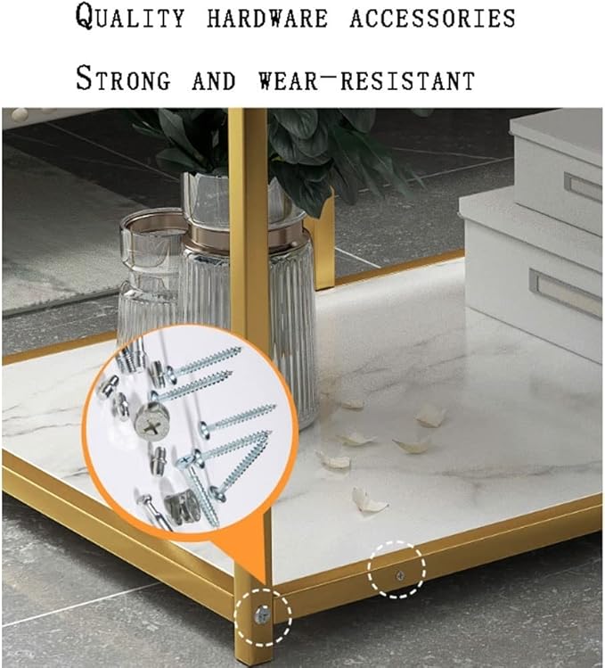 Transforma orice incapere intr-un spatiu elegant si bine organizat cu aceasta masuta moderna, realizata cu blat alb marmorat si cadru metalic auriu. Combinatia dintre textura premium si liniile minimaliste ofera un aspect sofisticat, potrivit pentru living, dormitor, birou sau hol.