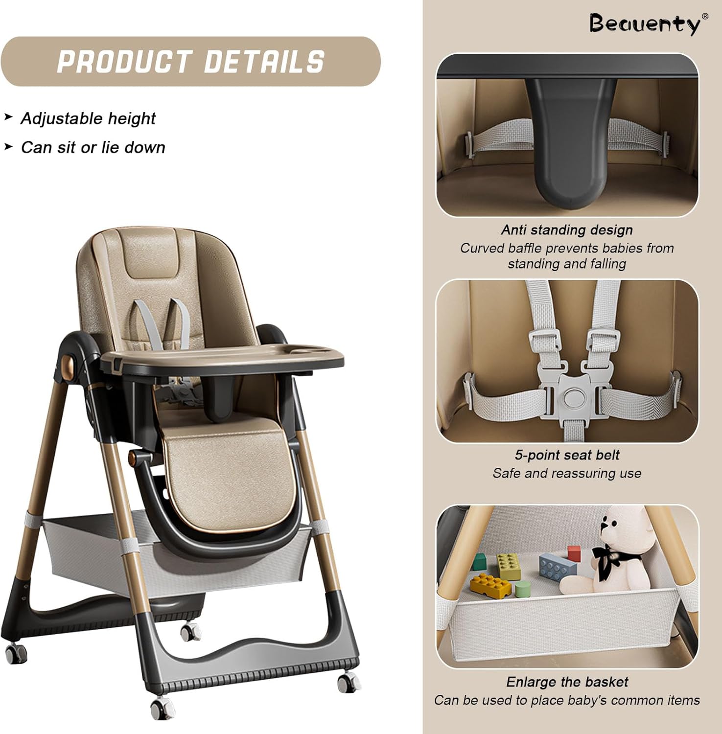 Functional, sigur si elegant, acest scaun de masa pentru bebelusi este perfect pentru mesele zilnice si momentele de joaca. Compact, pliabil si reglabil, ofera confort copilului si usurinta parintilor – totul intr-un design modern si practic.