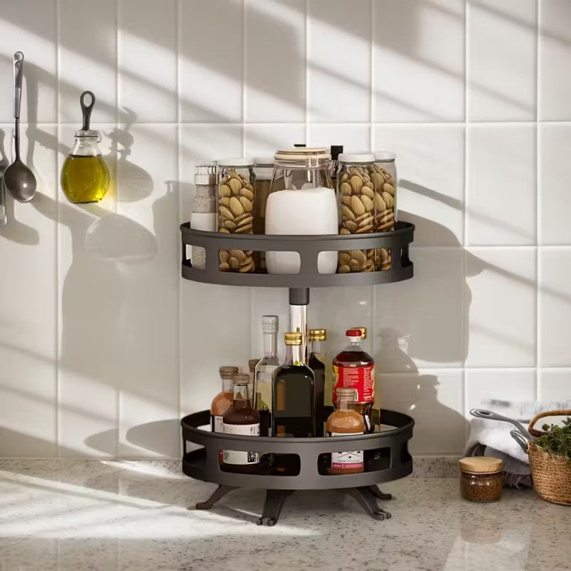 Organizeaza-ti bucataria cu stil si eficienta! Cu acest raft rotativ pentru condimente, vei avea toate mirodeniile, sosurile si borcanele la indemana printr-o simpla rotire. Designul modern si practic transforma complet modul in care iti organizezi blatul si dulapurile.